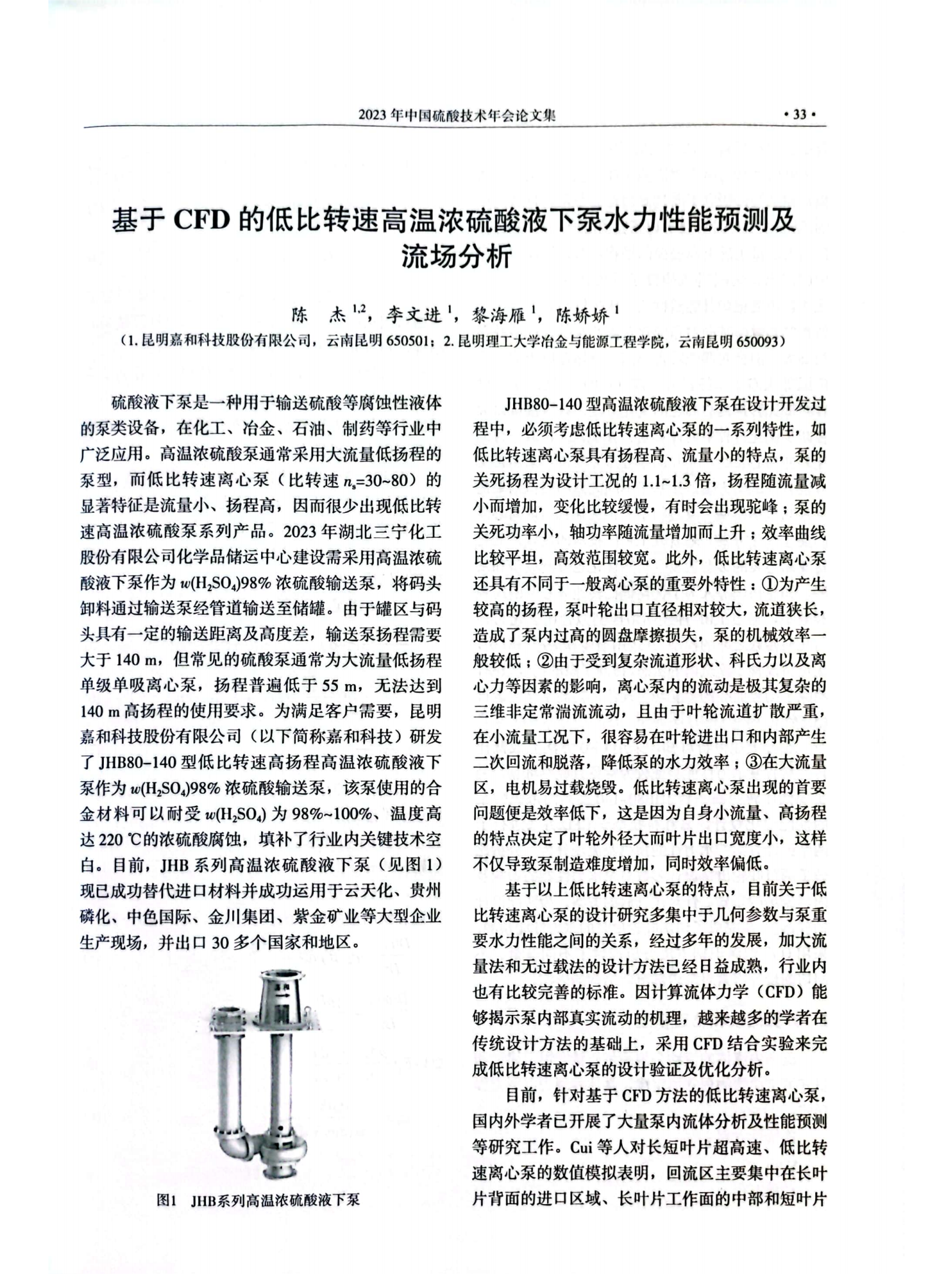 基于CFD的低比轉速高溫濃硫酸液下泵水力性能預測及流場分析
