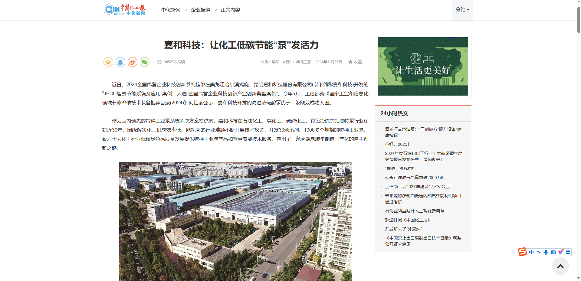 嘉和科技:讓化工低碳節能“泵”發活力