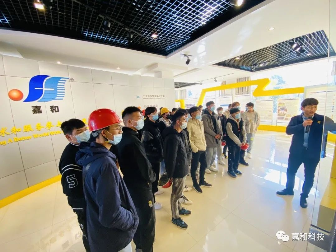 2021年12月1日“昆明冶金高等專科學校電器與機械學院”到嘉和科技參觀實習(120人左右),通過高校與企業的親密合作,雙向賦能,把校企協同、產教融合落到實處,將高校人才培養和協同育人落到根本,真正的幫助大學生提升就業能力,為他們實現更高質量的就業保駕護航。